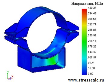 Между поверхностью трубы и хомута задавалось контактное взаимодействие